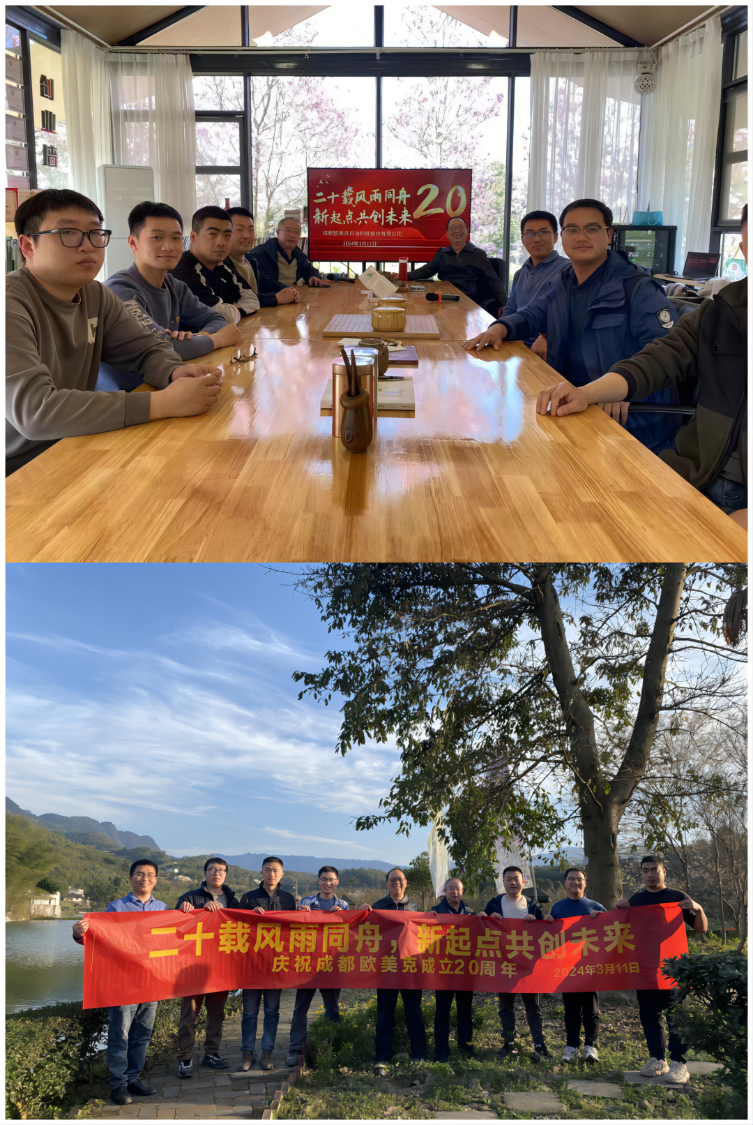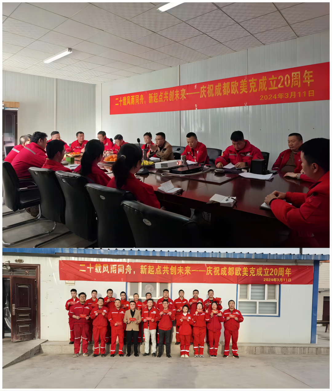 年华似水,二十年付春夏秋冬;光阴如梭,辉煌如不夜长虹。为庆祝公司成立 20 周年,回顾过去、展望未来,增强企业的凝聚力,2024年3月11日,成都欧美克在公司总部、新疆片区、华北片区、西南片区同步组织了庆祝公司成立20周年活动,共忆来时路,共话新征程。